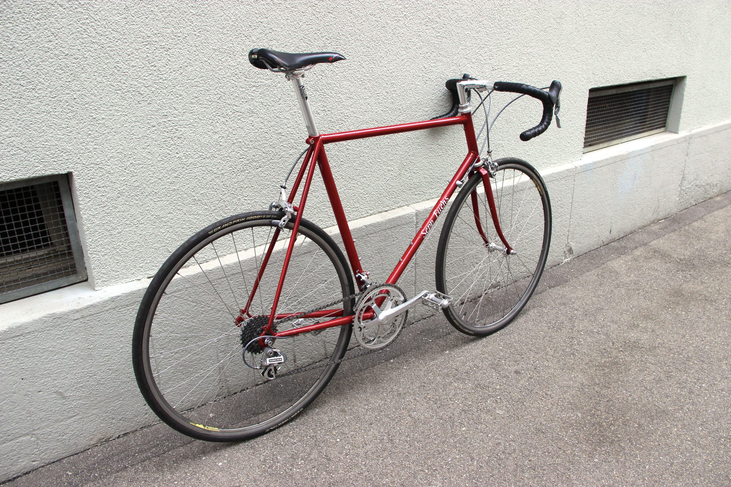 Crazy: This is my 40th bicycle! And it’s been a blast! And of corse it had to be a Koga Miyata. The best bikes ever. This one I got from a friendly guy in Luzern – he is changing to an electric bicycle. Lucky me. After I got it I striped the whole bike and cleaned everything in an ultra sonic cleaner. A first for me too. The parts looked like new and the reassembly – with new cables and cable housings, new chain and new handbar tape was therefor a real treat. The bicycle looks so classy and will make the owner happy for a long time.