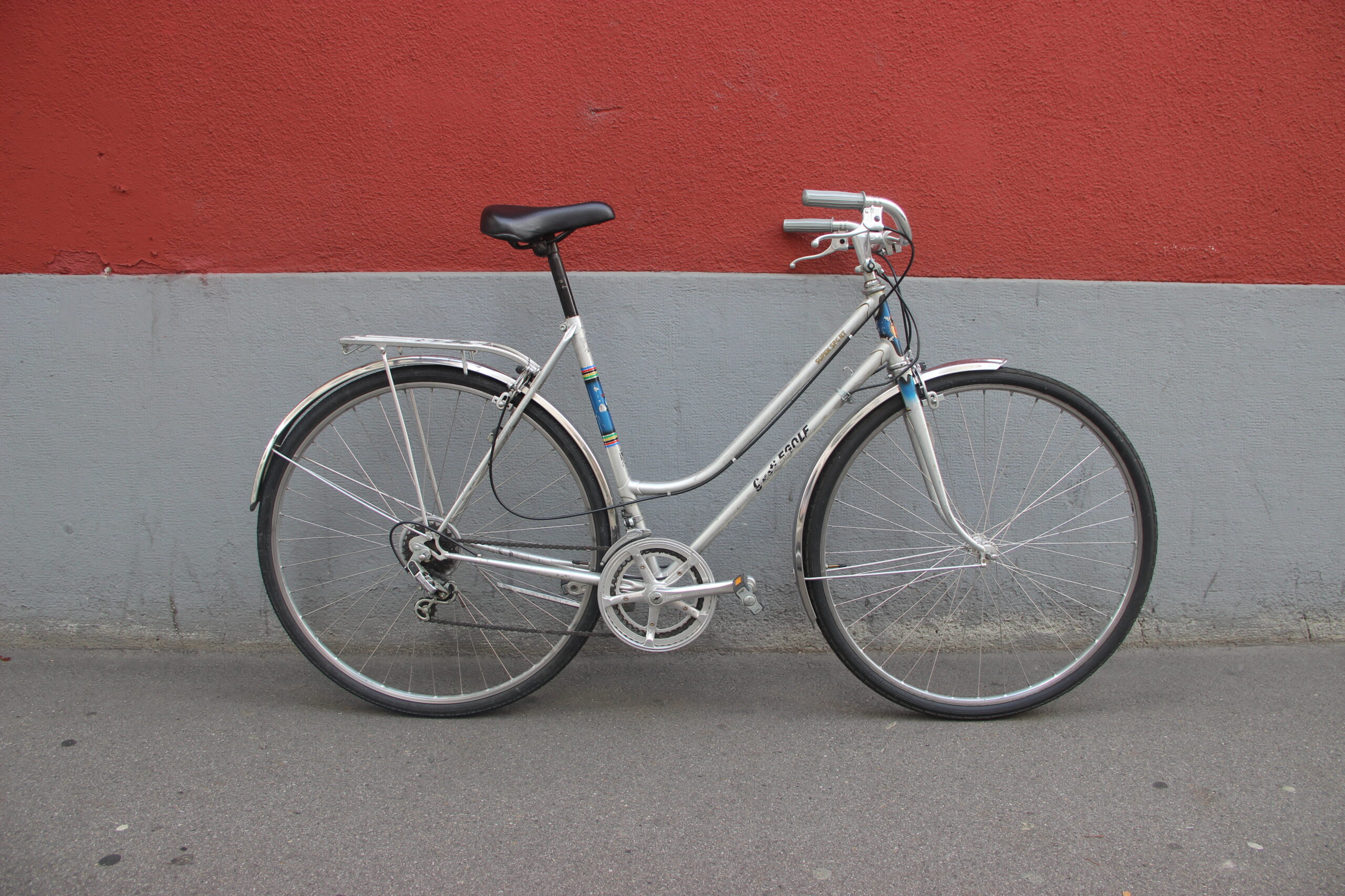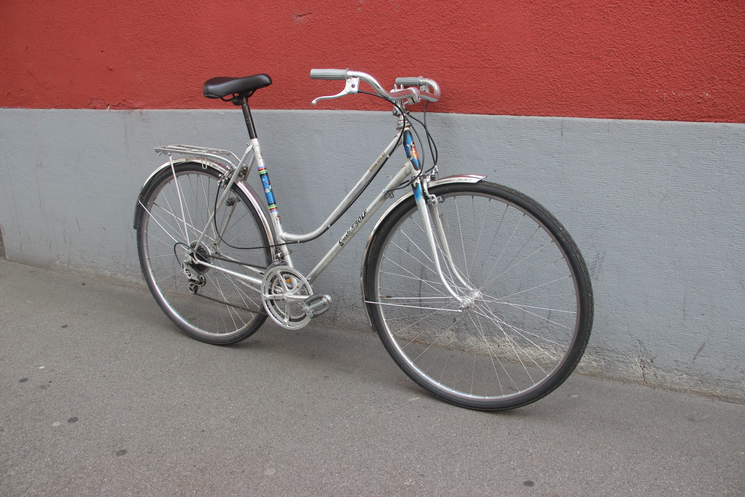 This summer, there were not many bicycles I liked on the market. And the ones I saw and had potential, were just way to expensive for my taste. Therefor I am even happier with presenting this cool bicycle. I bought it from an interesting men up in Zürich Oberland. Since the bicycle was only standing around in his garage, he was super happy that someone took it on the road again. I changed the tires and adjusted everything properly. Now, it runs great and with its ten gears, you can even ride uphill!
