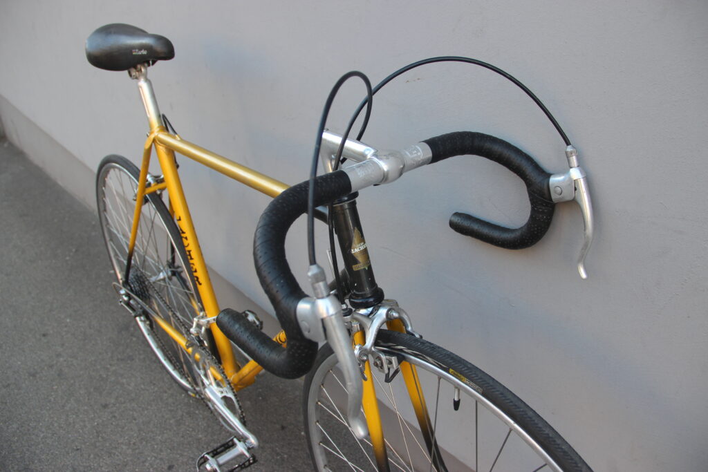 A Sunny bicycle for sunny days! And this one is a serious hilarious "Lacher" - a very light Cilo frame in a yellow and gold colour scheme. The bicycle is super clean, brakes and shifts perfectly. Moreover it runs super fast. I intentionally got it for a friend of mine, but unfortunately for her / fortunately for you, it wasn't the right Sunny for her. Now, somebody else can be the lucky new owner of Sunny!