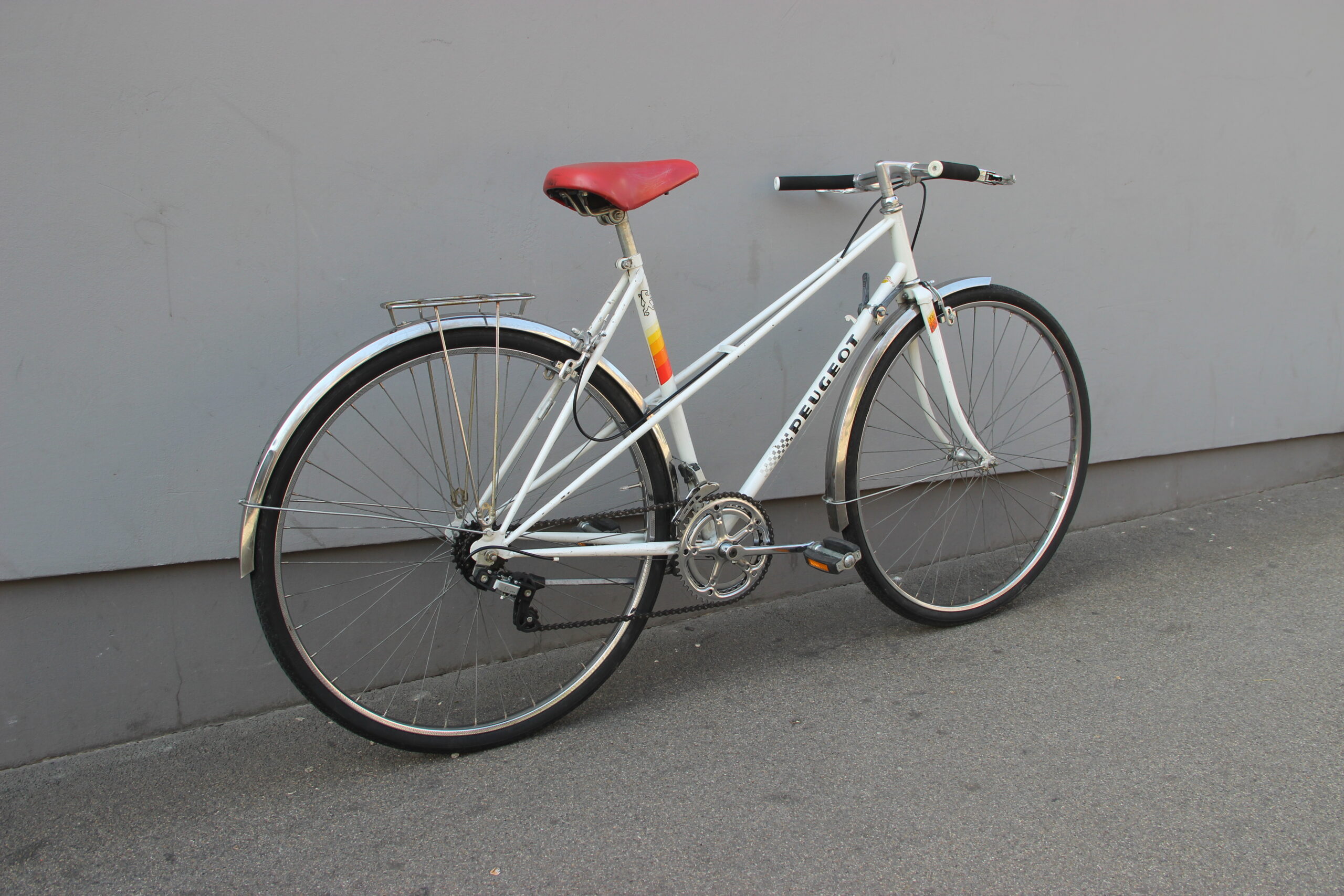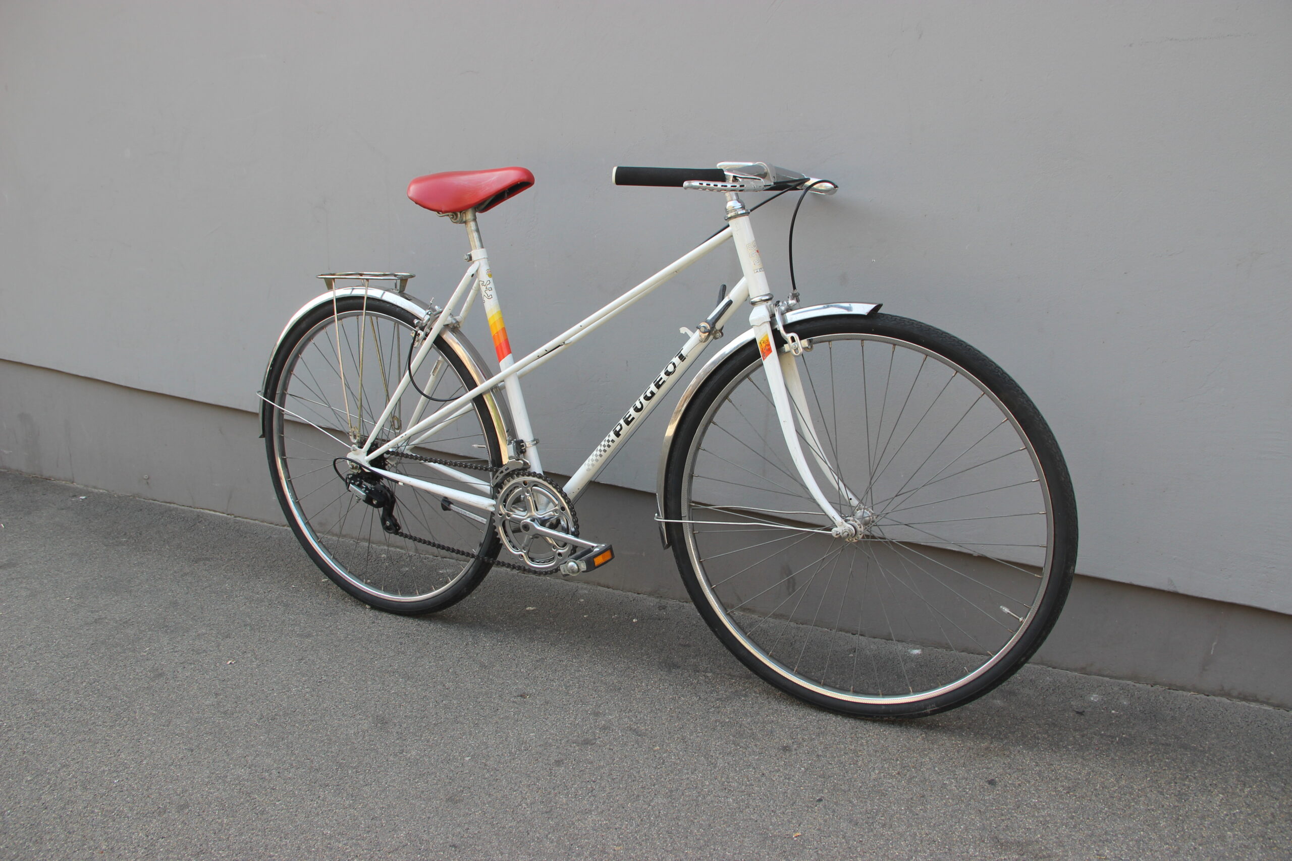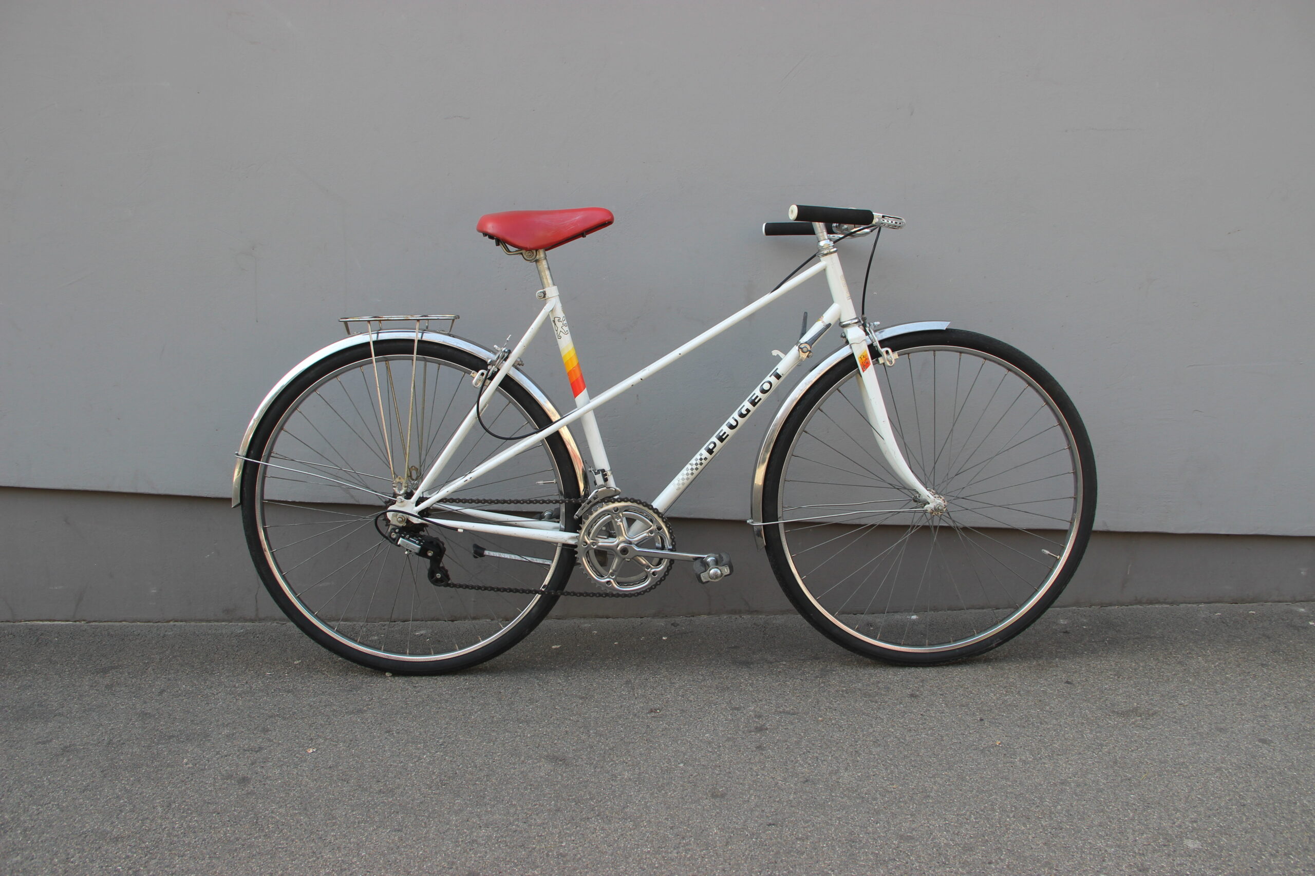 My first Peugeot bicycle. And what a beauty. When I got it, it was in a bad condition - broken, rusty, dirty. It took me a while to get this one back on track. But I am really happy with the result. I cleaned the whole bicycle, removed all the unnecessary parts, changed the tubes, brake levers and handlebar and finally adjusted the shifting and braking. Now it runs great and wants to get back on the road.
