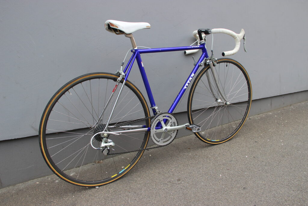 I organized this fancy bicycle for a good friend of mine. One evening at Le Calvados I showed her the picture of my newest bicycle and of corse, she excitedly said: That's mine - I love it! But sadly, the chosen one wasn't the right size for her. So I started the mission of finding a bicycle that suits and fits her perfectly. When I found this Titan bicycle I knew it's perfect for her. So I bought it and overhauled it in my living room. And of corse, as soon as my girlfriend saw the bicycle in our living room, she excitedly said: That's mine - I love it! But sadly, the chosen one isn't the right size for her. Luckily for my friend!