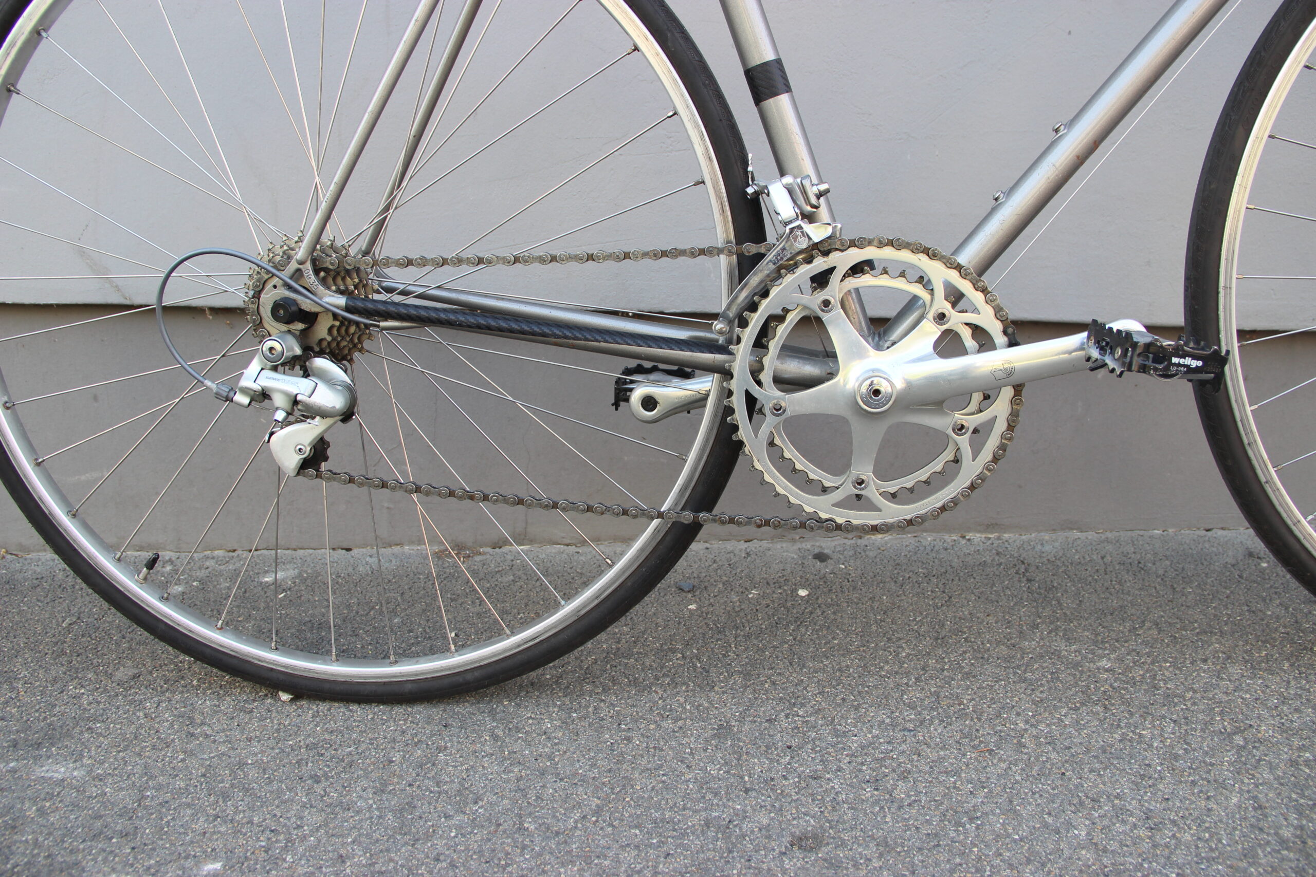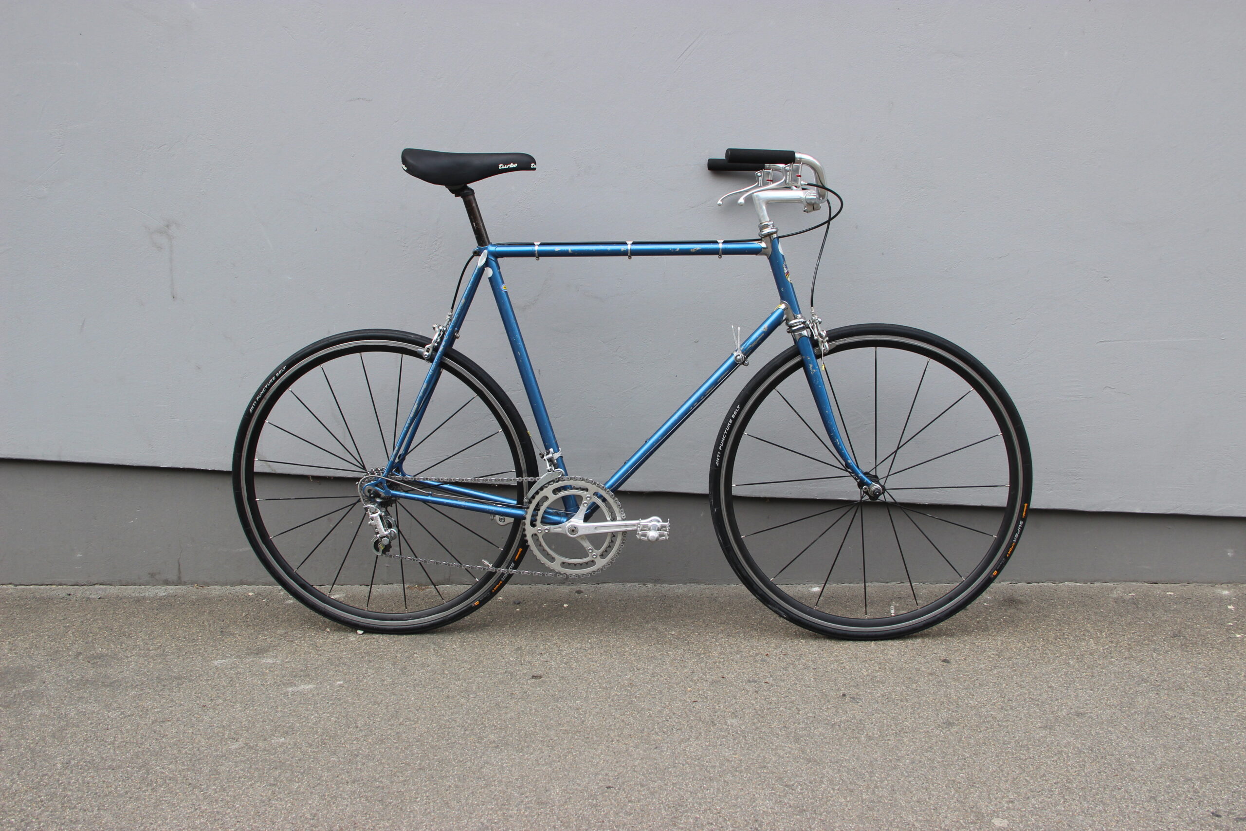 Well well well, what can I say. This is a rose bicycle. When I got it from a women, who lives up the hill now, it was rose. And now, after the overhaul, it is still rose. But, I also made sure that it's a beautiful rose bicycle. It runs great and the rose colour makes really happy. Have you ever heard the expression: To see the world through rose-colored glasses!?